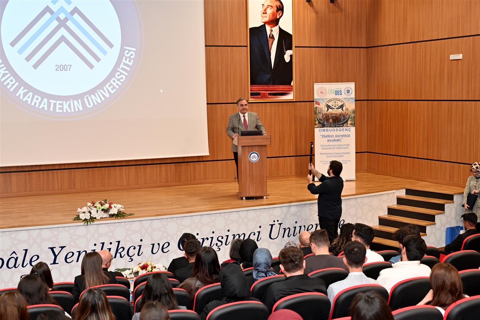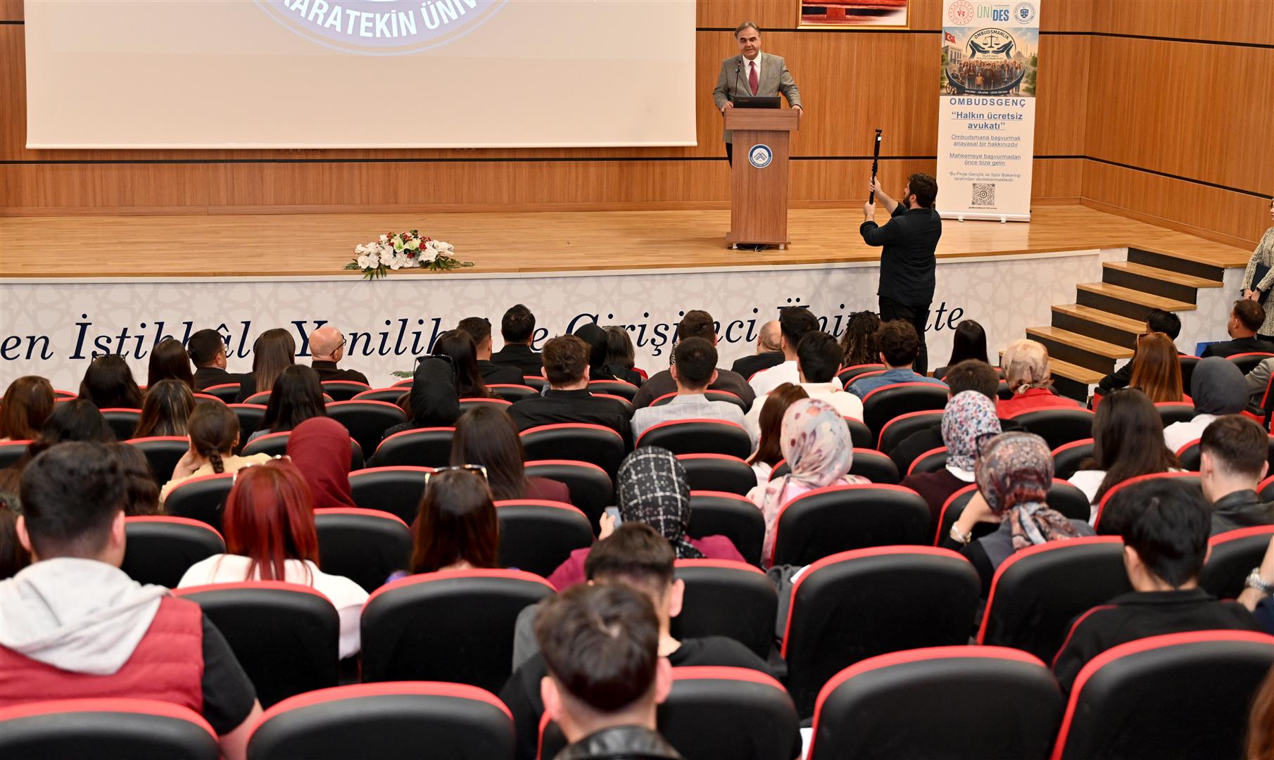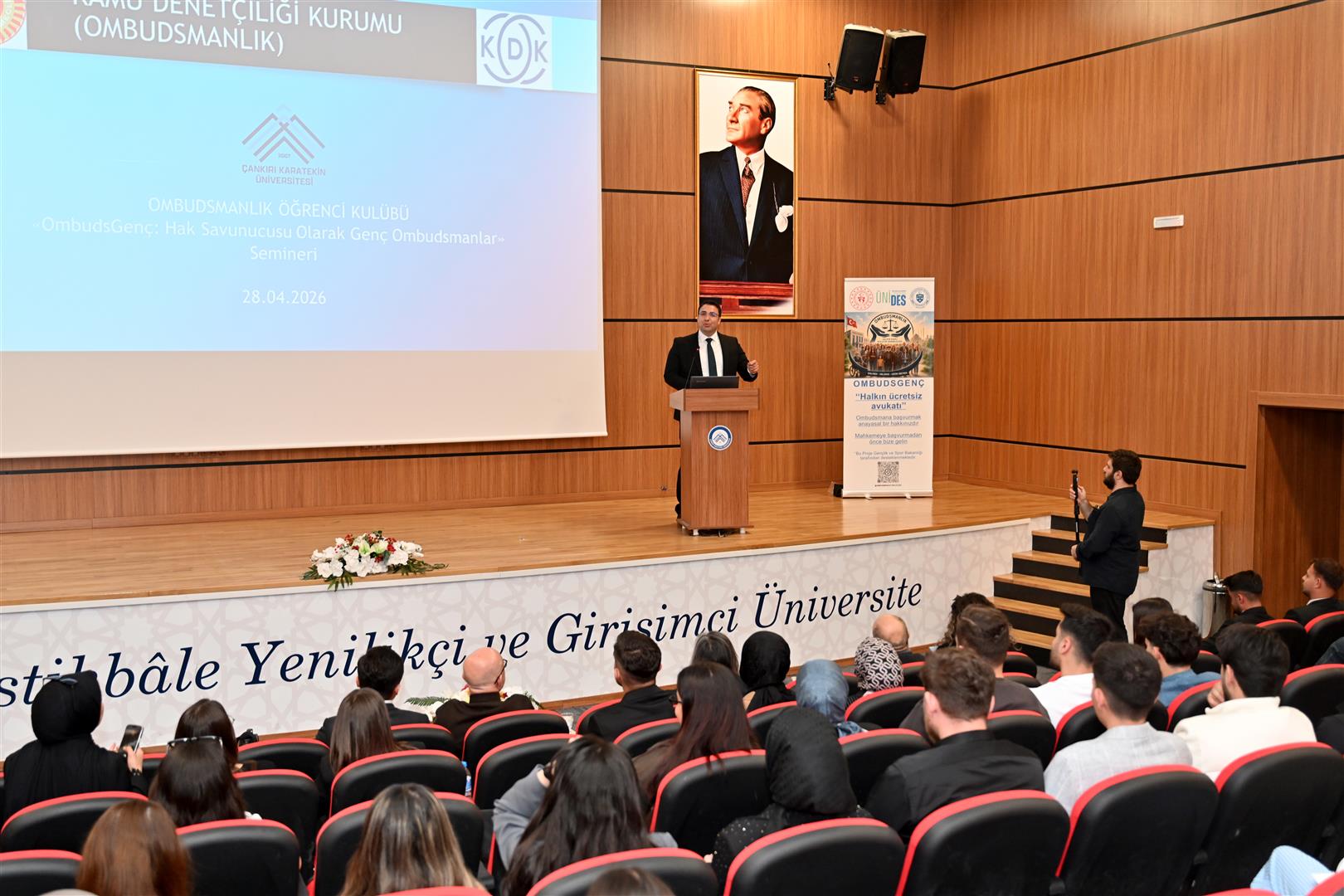 28 Nisan 2026 Salı günü ÇAKÜ Ahmet Yesevi Konferans Salonu’nda gerçekleştirilen seminere; Çankırı Karatekin Üniversitesi Rektörü Prof. Dr. Mevlüt Karataş, Kamu Denetçisi Özcan Yıldız, Kamu Denetçiliği Kurumu Uzmanı ve Daire Başkanı Berna Süer, akademisyenler, öğrenciler ile birlikte Atatürk Üniversitesi, İnönü Üniversitesi ve Mersin Üniversitesi Ombudsmanlık Topluluğu başkanları ve üyeleri katıldı.