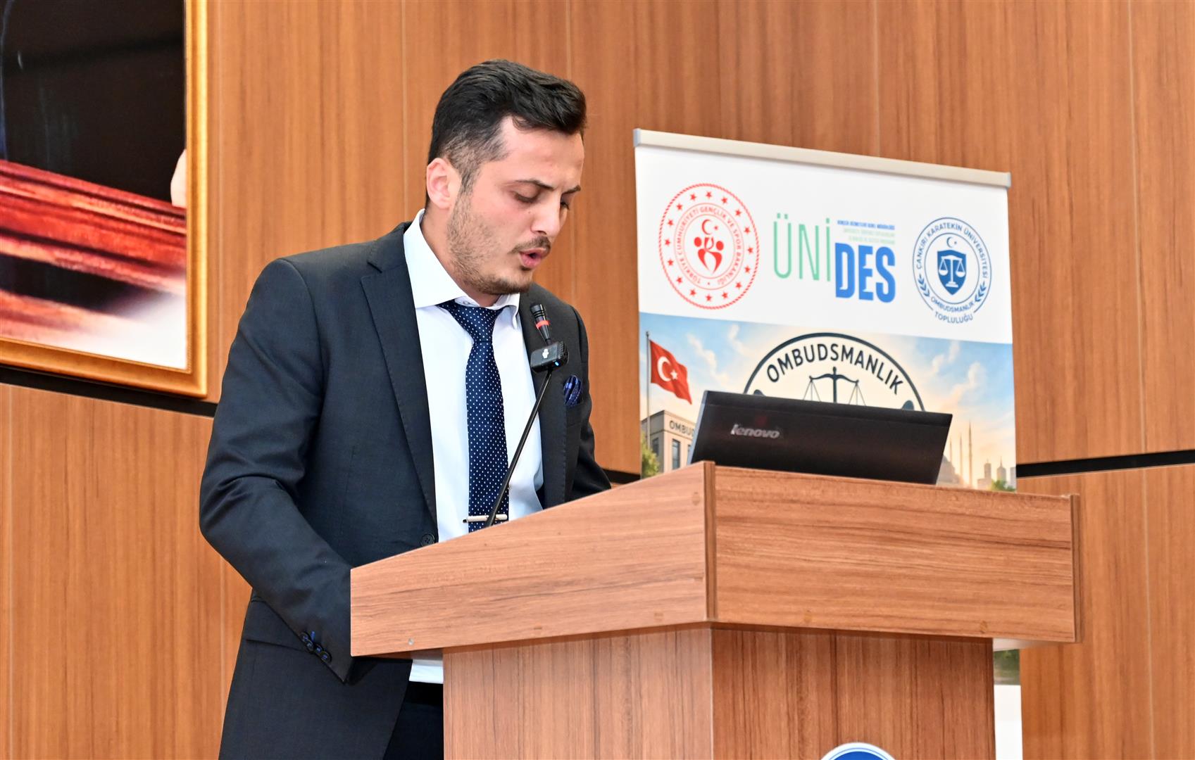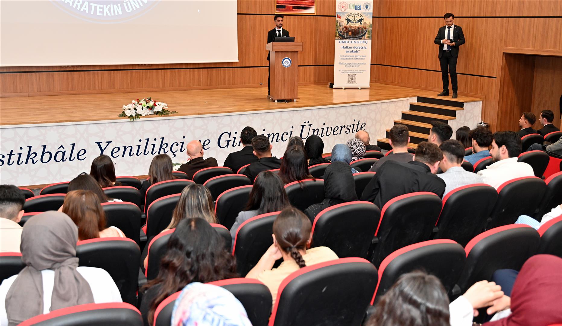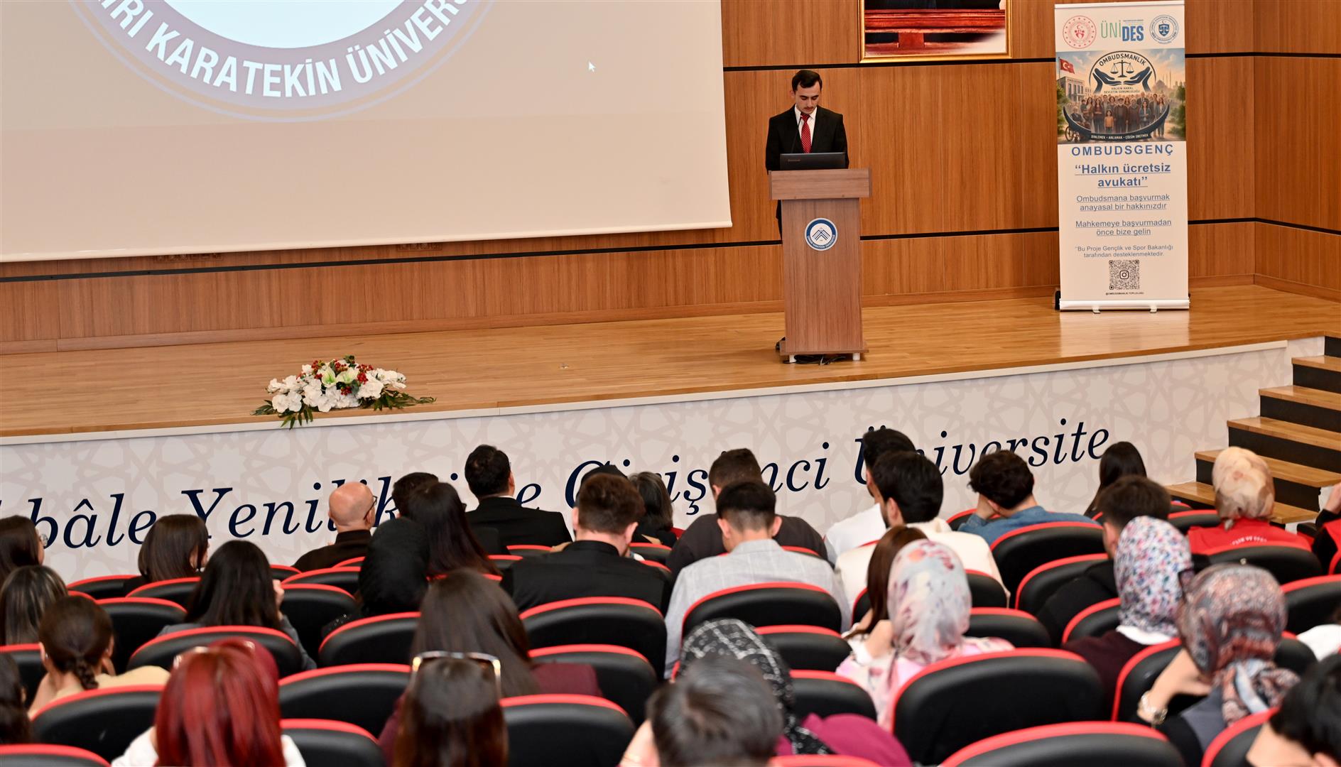 Saygı duruşu ve İstiklal Marşı’nın okunmasıyla başlayan seminerin açılışında konuşan ÇAKÜ Ombudsmanlık Topluluğu Başkanı Erdem Koç, ÜNİDES 6. Dönem projeleri kapsamında kabul edilen “Genç Ombudsmanlar” projesi doğrultusunda hak arama kültürünün yaygınlaştırılması ve gençler arasında bilinç oluşturulması amacıyla seminerin düzenlendiğini belirterek katılımcılara teşekkür etti.